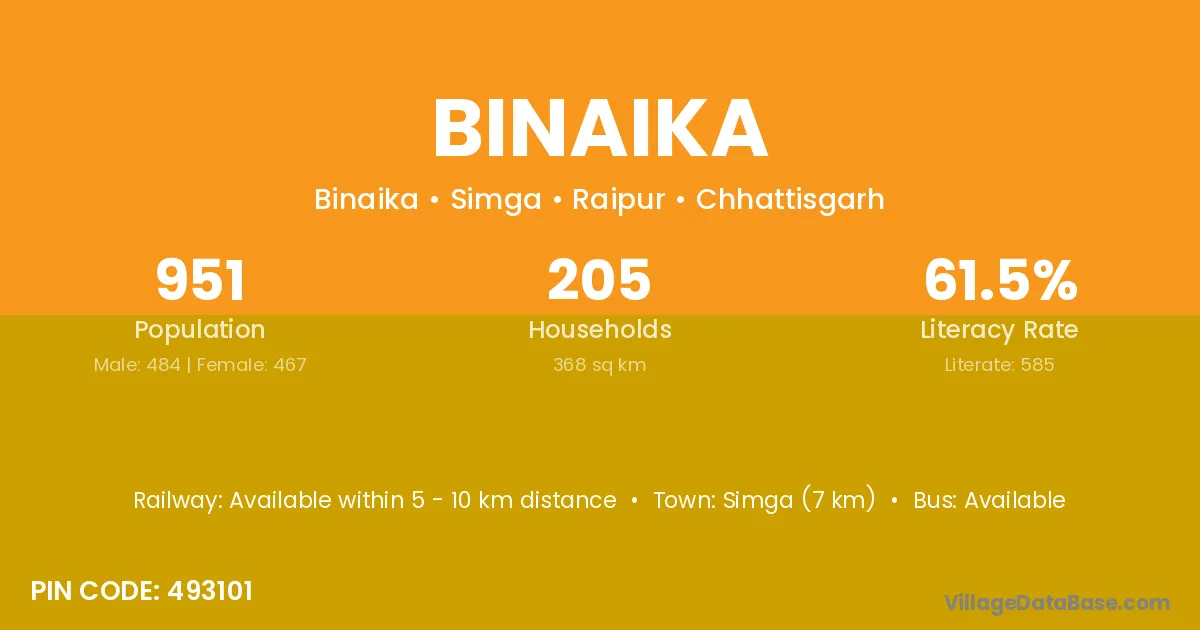 Binaika village has a total population of 375 people, of which 205 are males and 170 are females.
