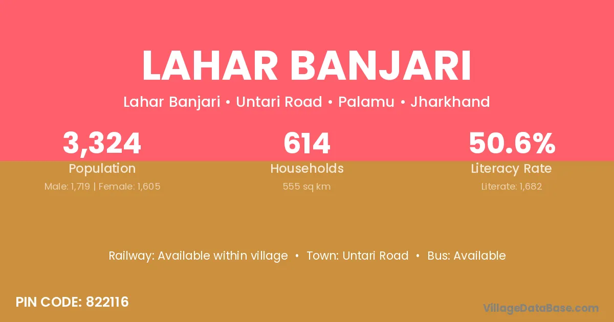 Lahar Banjari village has a total population of 3,324 people, of which 1,719 are males and 1,605 are females.