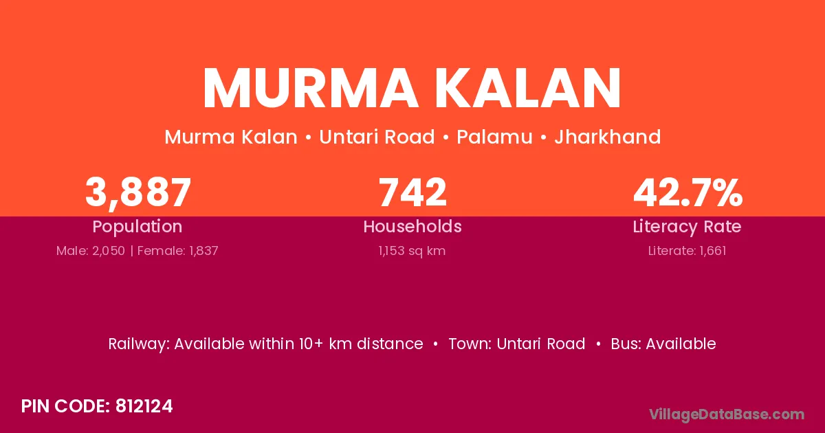 Untari Road is the nearest town to Murma Kalan village for major economic activities