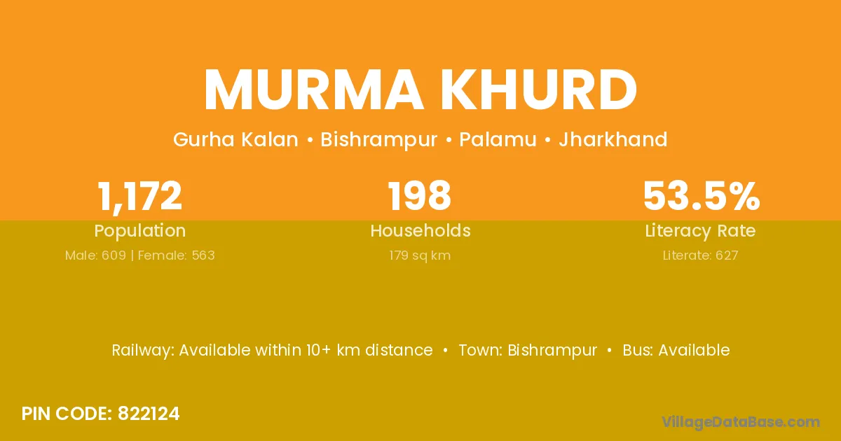 Bishrampur is the nearest town to Murma Khurd village for major economic activities