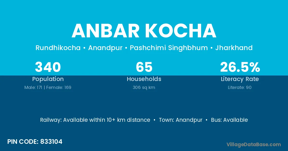 According to Census 2011 information, the village code of Anbar Kocha village is 833104.