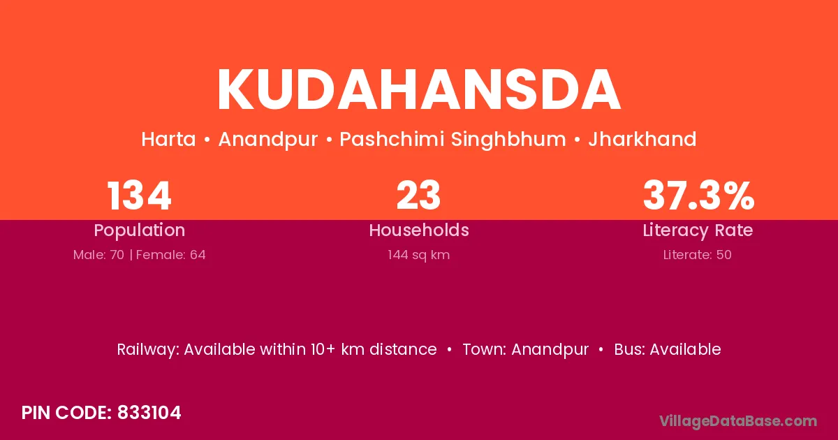 According to Census 2011 information, the village code of Kudahansda village is 833104.