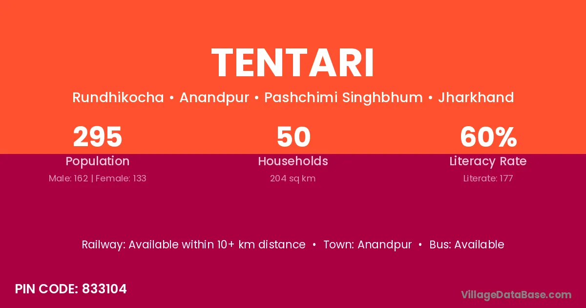 According to Census 2011 information, the village code of Tentari village is 833104.