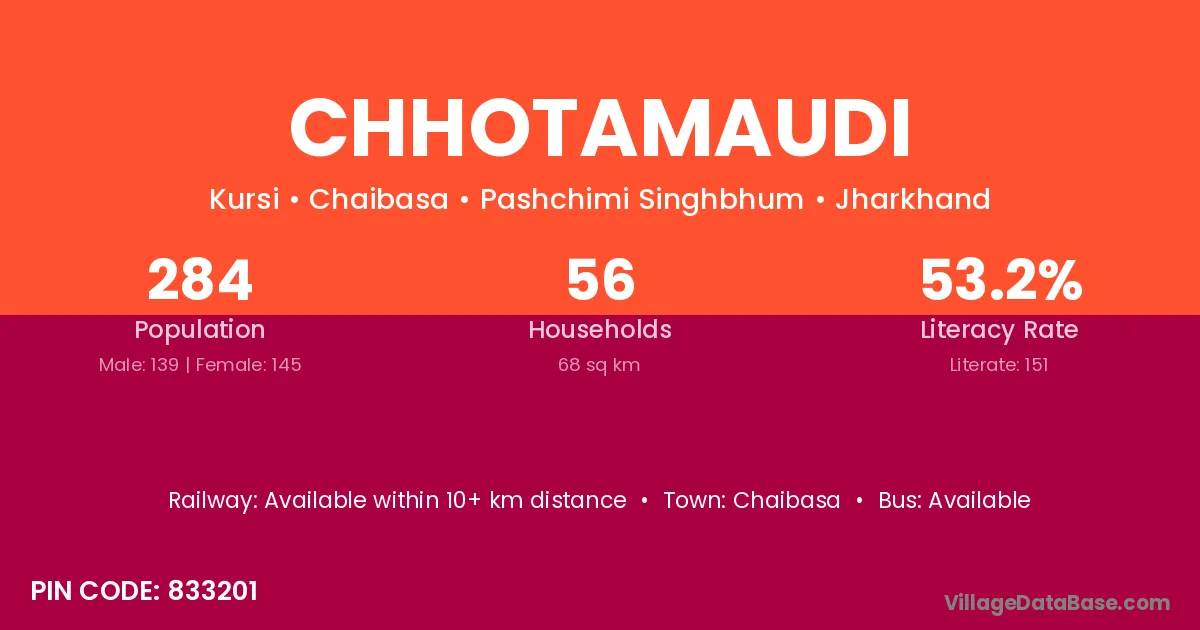 Chaibasa is the nearest town to Chhotamaudi village for major economic activities