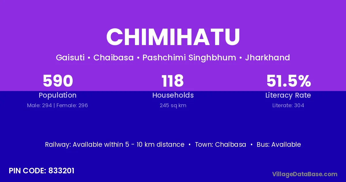 Chaibasa is the nearest town to Chimihatu village for major economic activities