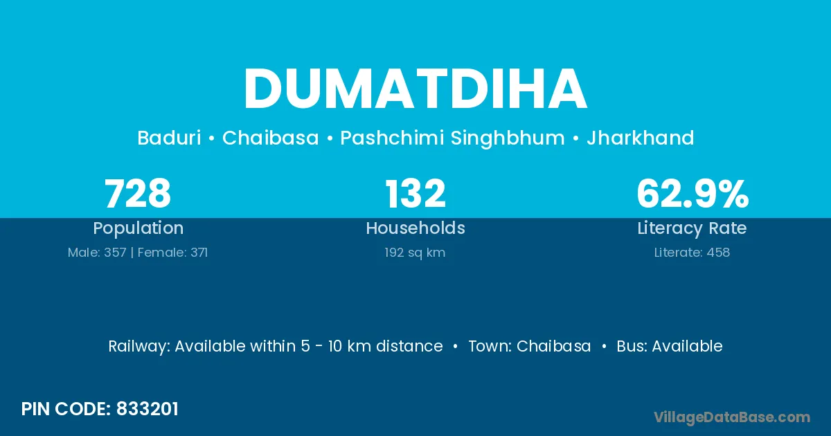 Chaibasa is the nearest town to Dumatdiha village for major economic activities