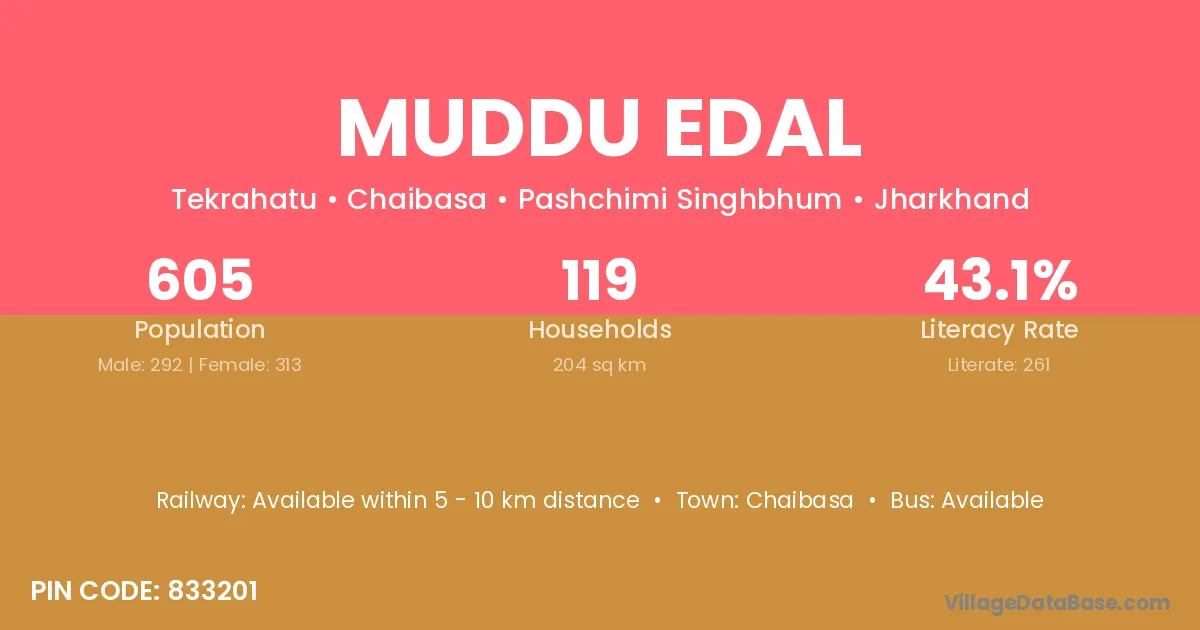 Muddu Edal village is located in the Chaibasa Subdivision of the Pashchimi Singhbhum district in Jharkhand .