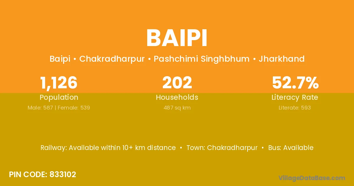 Chakradharpur is the nearest town to Baipi village for major economic activities