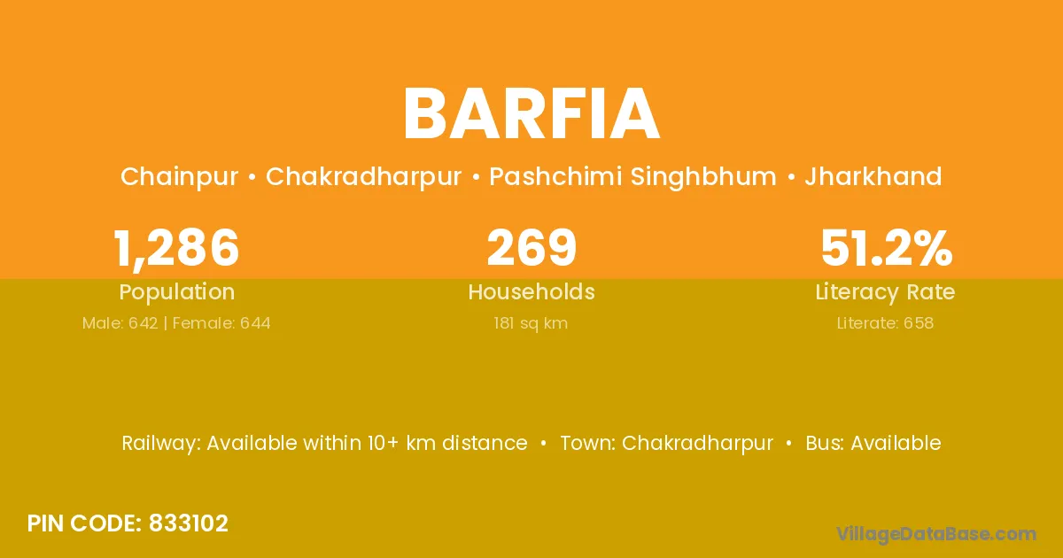Chakradharpur is the nearest town to Barfia village for major economic activities