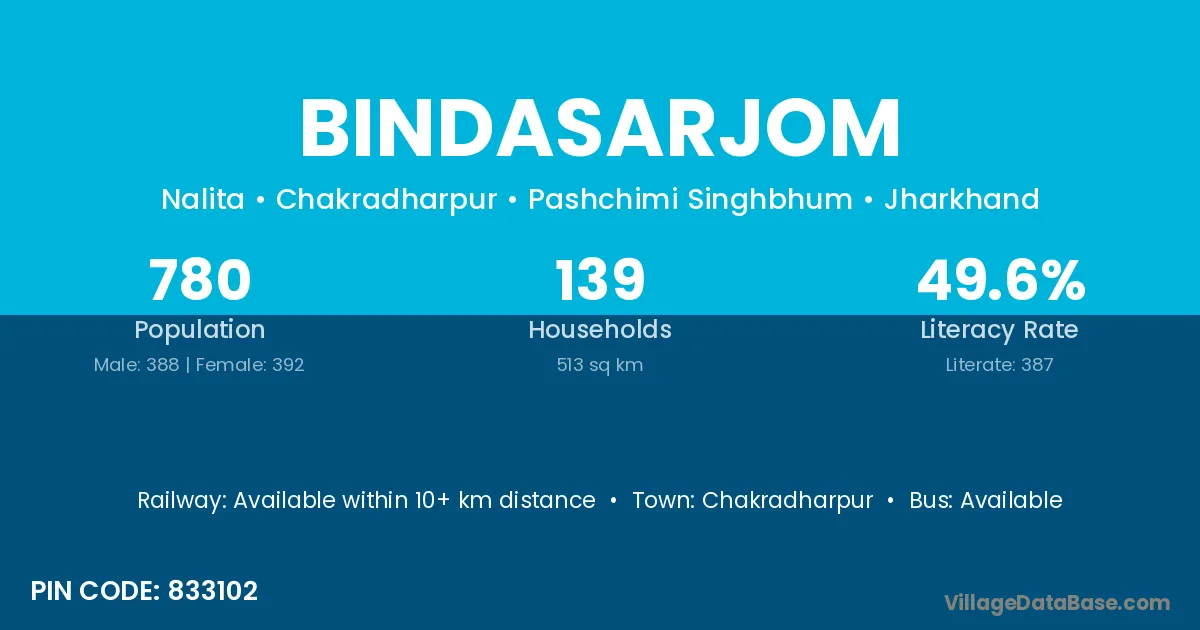 Chakradharpur is the nearest town to Bindasarjom village for major economic activities