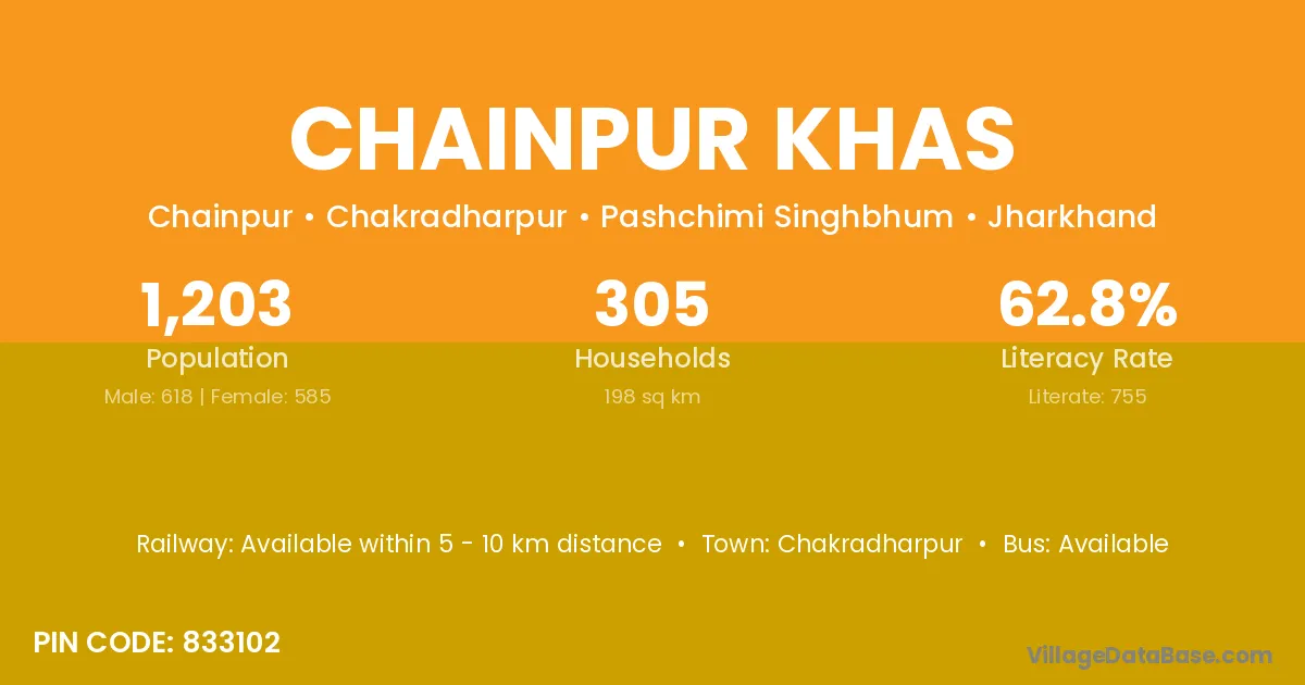 Chainpur Khas village has a total population of 1,203 people, of which 618 are males and 585 are females.