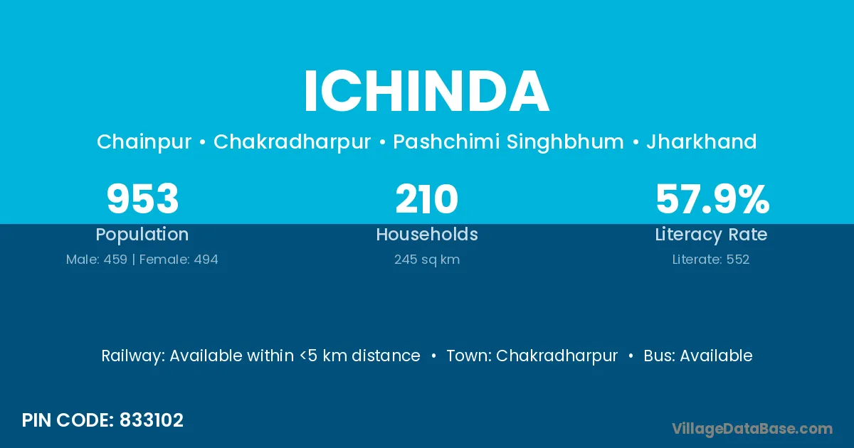 Chakradharpur is the nearest town to Ichinda village for major economic activities