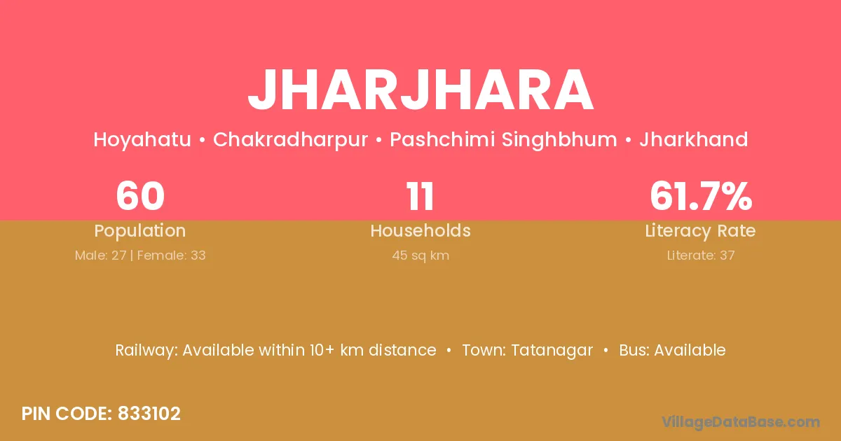Jharjhara village has a total population of 60 people, of which 27 are males and 33 are females.