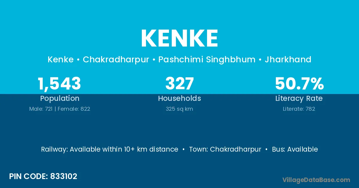 According to Census 2011 information, the village code of Kenke village is 833102.