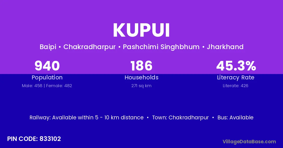 Kupui village is located in the Chakradharpur Subdivision of the Pashchimi Singhbhum district in Jharkhand .