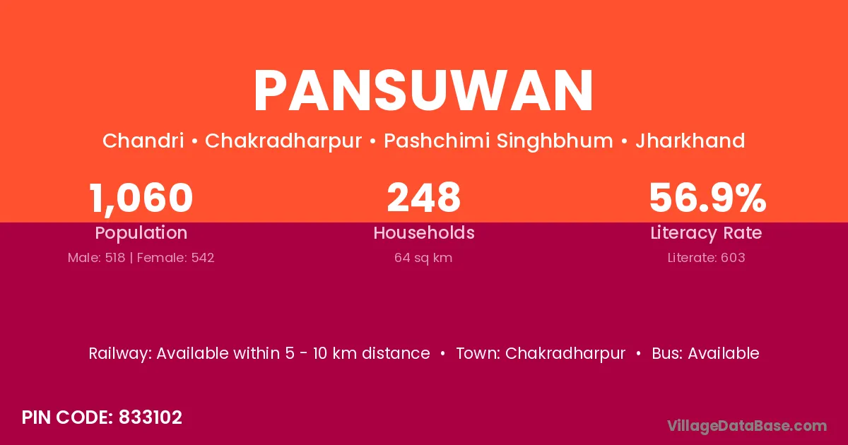 Chakradharpur is the nearest town to Pansuwan village for major economic activities