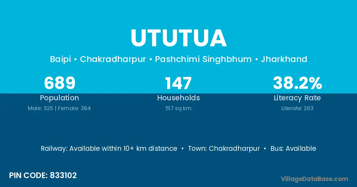 Chakradharpur is the nearest town to Ututua village for major economic activities