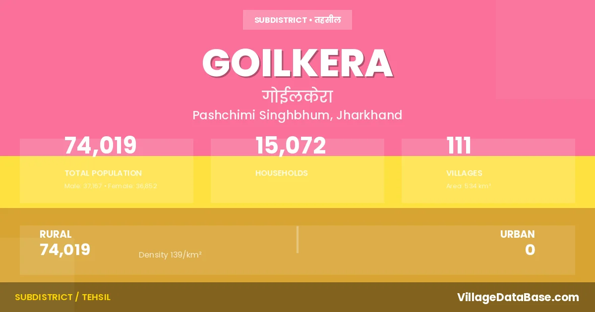 Goilkera Subdivision comprises about 111 villages. Below is a list of these villages along with information about their respective gram panchayats and the nearest town: