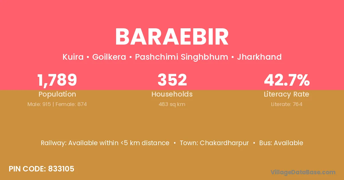 Chakardharpur is the nearest town to Baraebir village for major economic activities