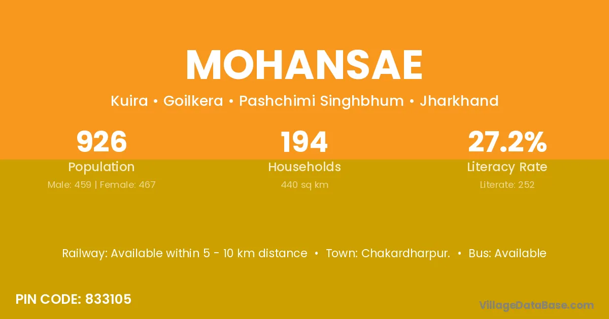 Chakardharpur. is the nearest town to Mohansae village for major economic activities
