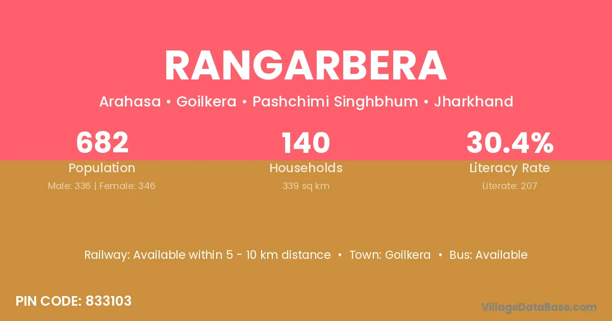 Rangarbera village has a total population of 682 people, of which 336 are males and 346 are females.