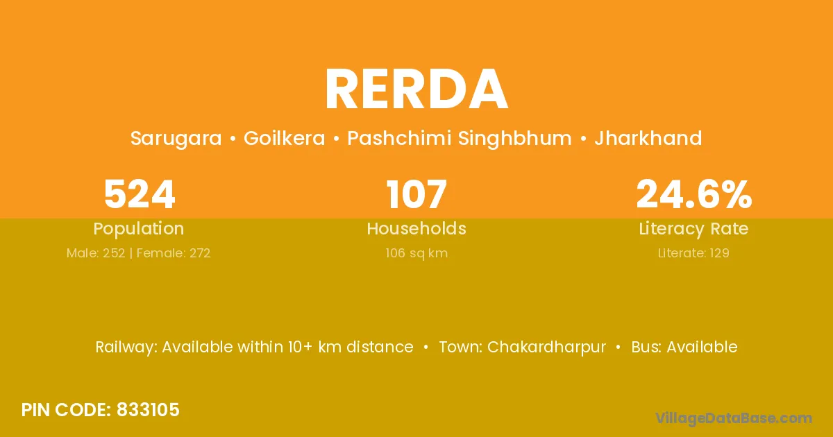 According to Census 2011 information, the village code of Rerda village is 833105.