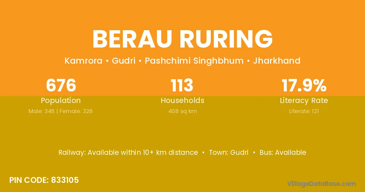 Berau Ruring village is located in the Gudri Subdivision of the Pashchimi Singhbhum district in Jharkhand .