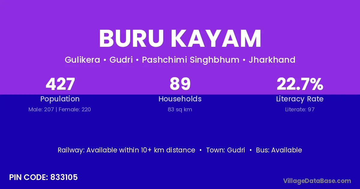 Buru Kayam village is located in the Gudri Subdivision of the Pashchimi Singhbhum district in Jharkhand .