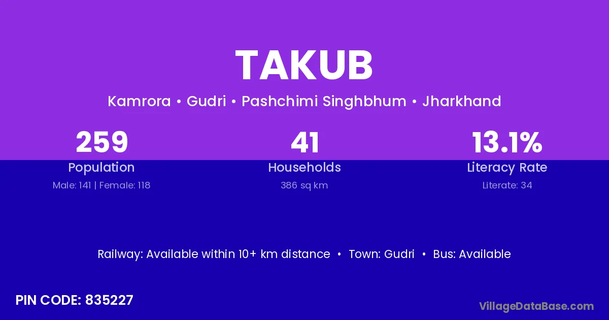 Takub village is located in the Gudri Subdivision of the Pashchimi Singhbhum district in Jharkhand .