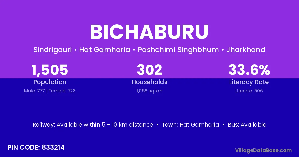 Bichaburu village has a total population of 1,505 people, of which 777 are males and 728 are females.