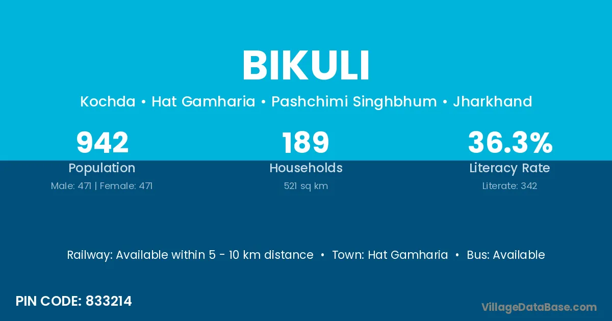 According to Census 2011 information, the village code of Bikuli village is 833214.