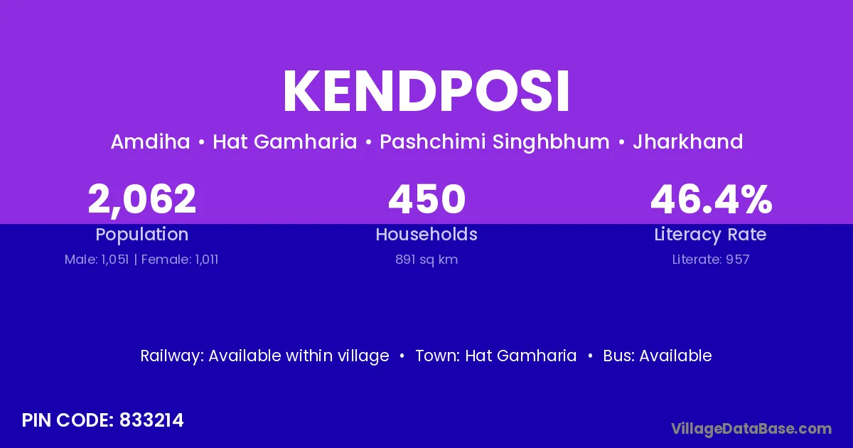 According to Census 2011 information, the village code of Kendposi village is 833214.