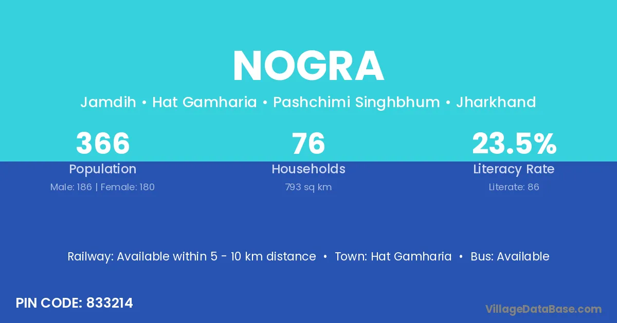 According to Census 2011 information, the village code of Nogra village is 833214.