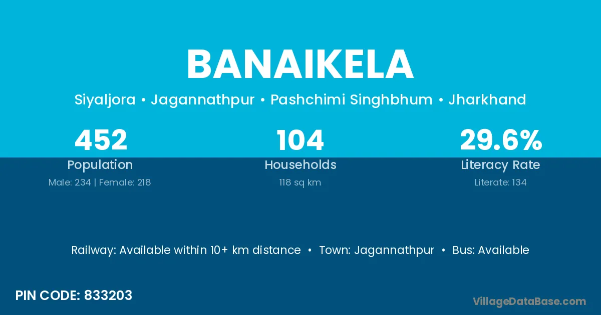 According to Census 2011 information, the village code of Banaikela village is 833203.