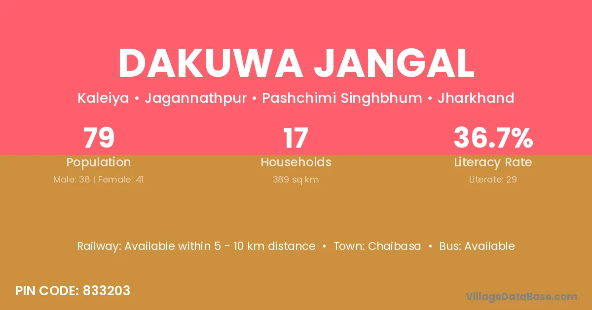 Dakuwa Jangal village has a total population of 79 people, of which 38 are males and 41 are females.