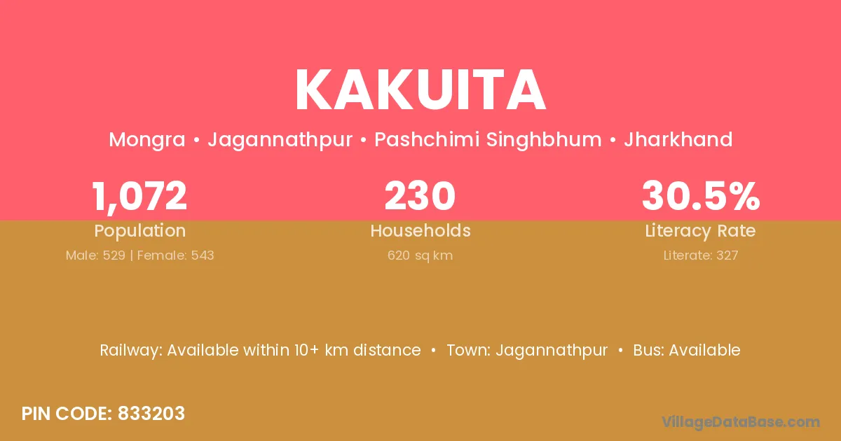 Kakuita village is located in the Jagannathpur Subdivision of the Pashchimi Singhbhum district in Jharkhand .