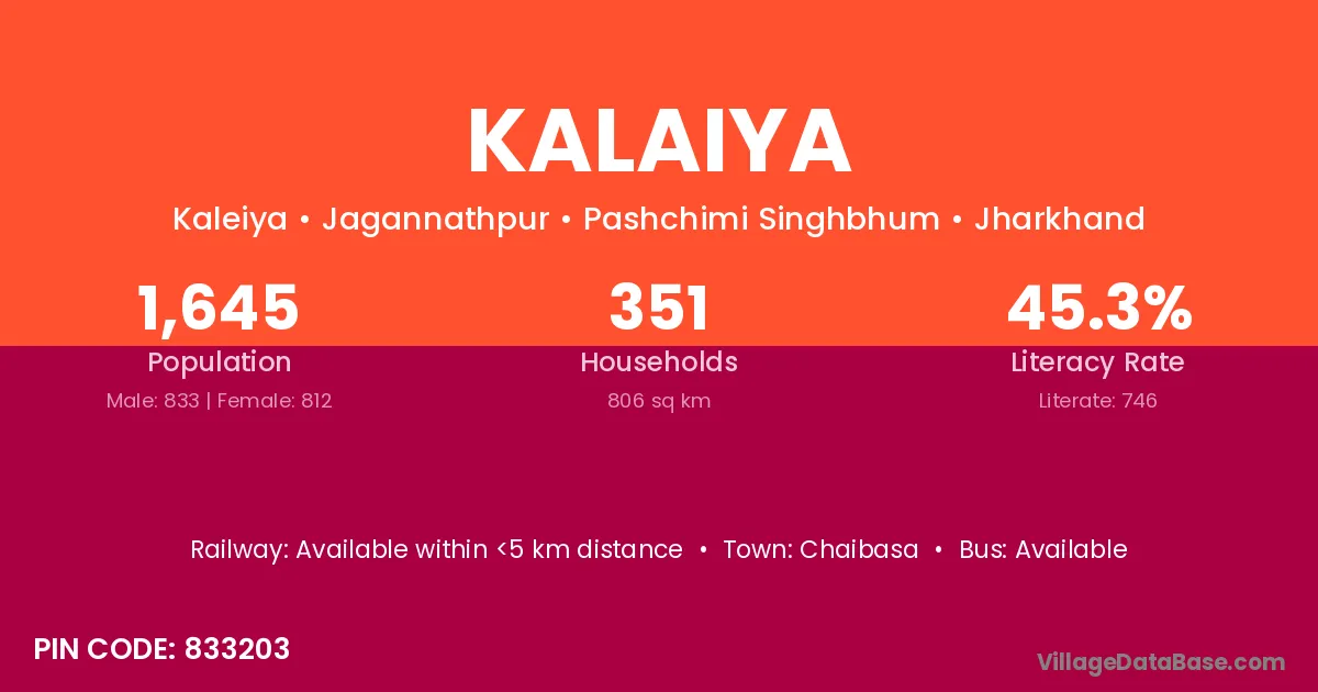 Chaibasa is the nearest town to Kalaiya village for major economic activities