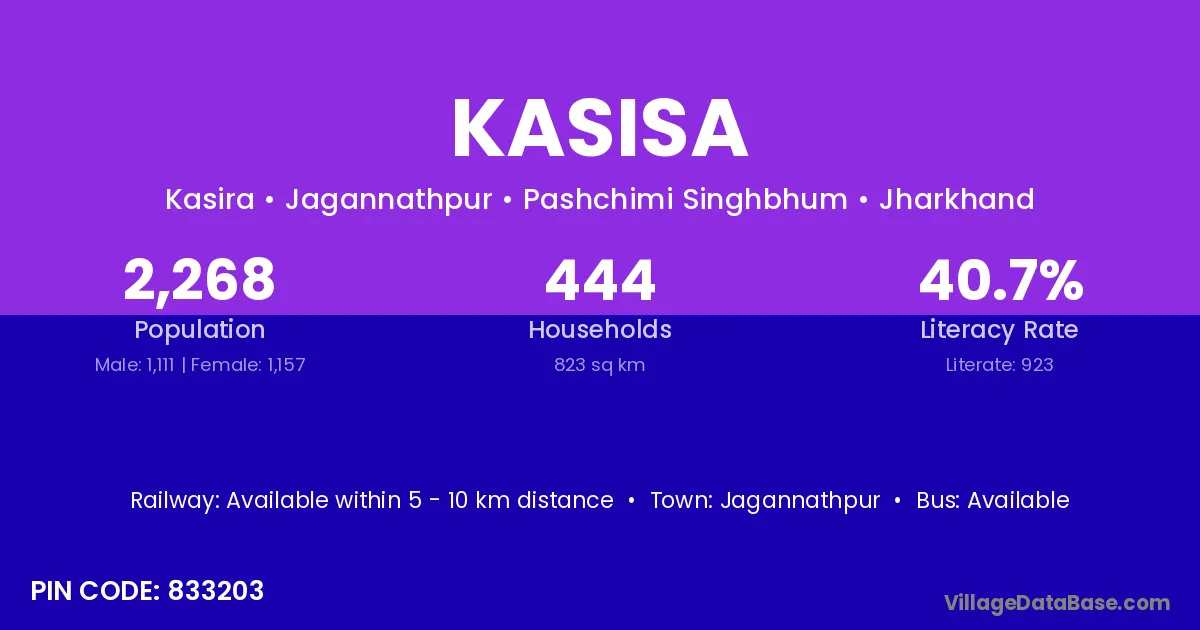 Kasisa village is located in the Jagannathpur Subdivision of the Pashchimi Singhbhum district in Jharkhand .