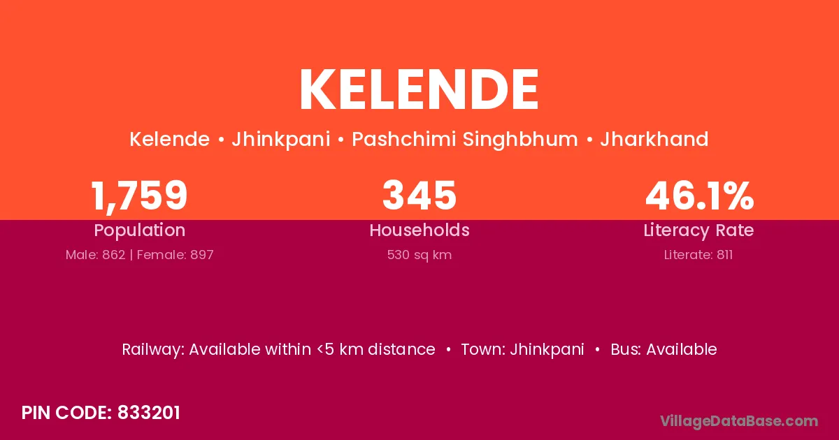 According to Census 2011 information, the village code of Kelende village is 833201.