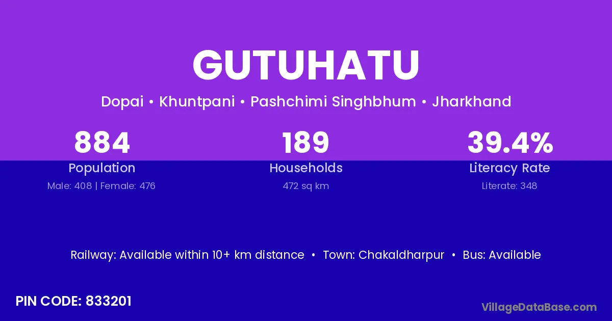 According to Census 2011 information, the village code of Gutuhatu village is 833201.