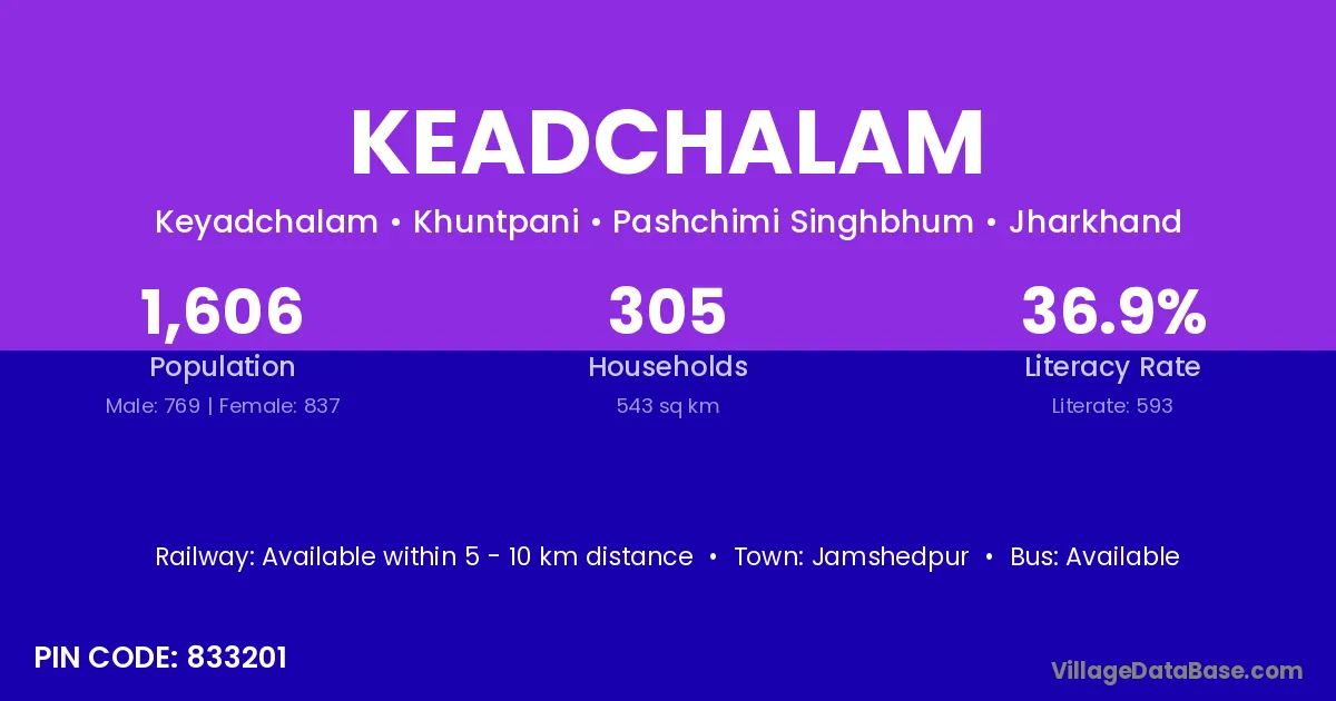Keadchalam village is located in the Khuntpani Subdivision of the Pashchimi Singhbhum district in Jharkhand .