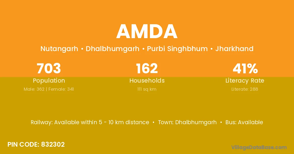 Jamshedpur is the nearest town to Amda village for major economic activities