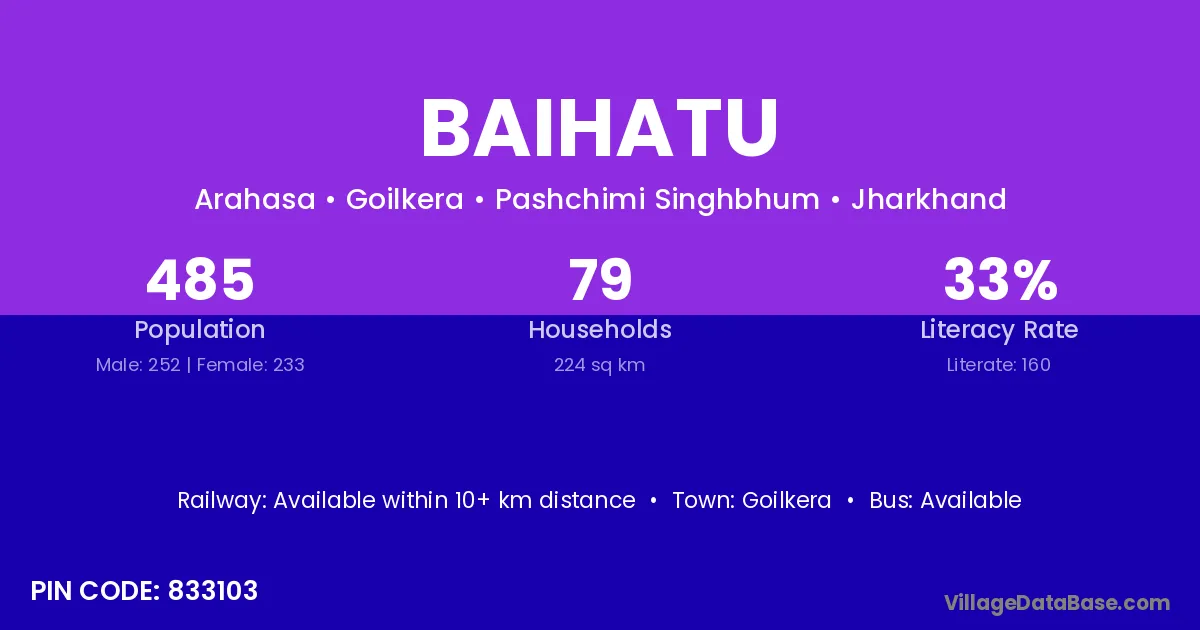 According to Census 2011 information, the village code of Baihatu village is 833214.