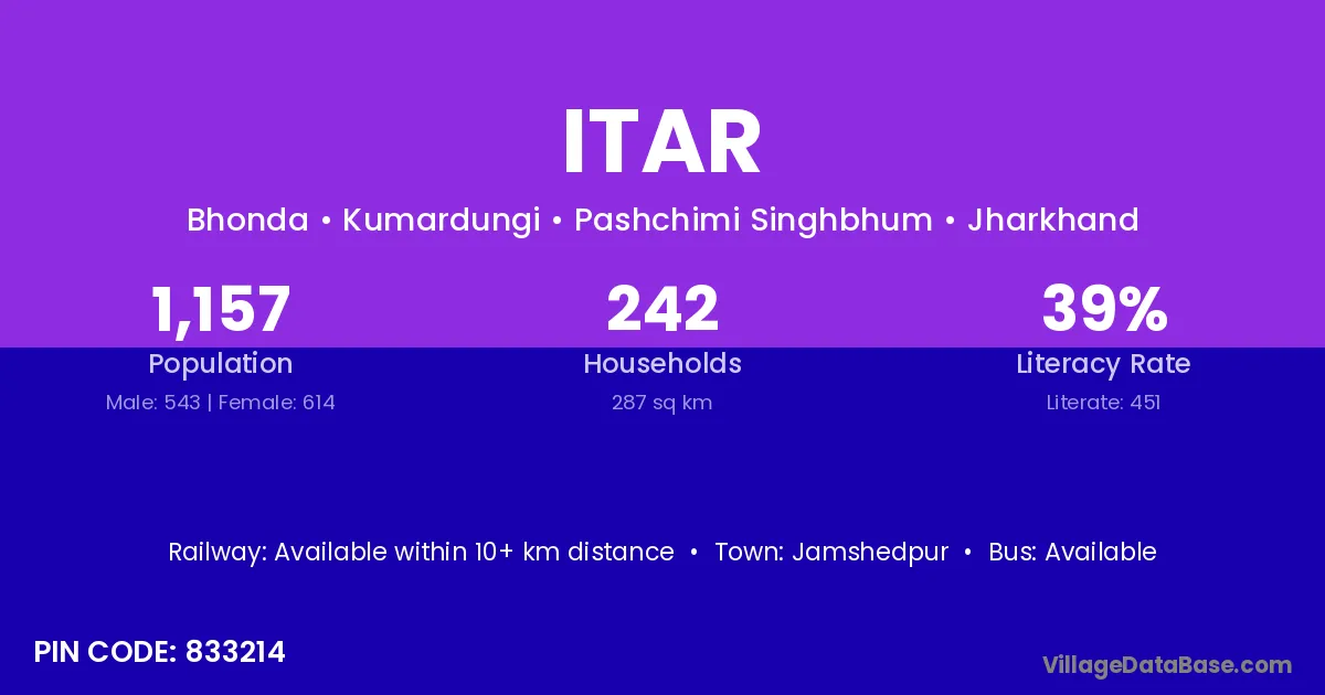 Jamshedpur is the nearest town to Itar village for major economic activities