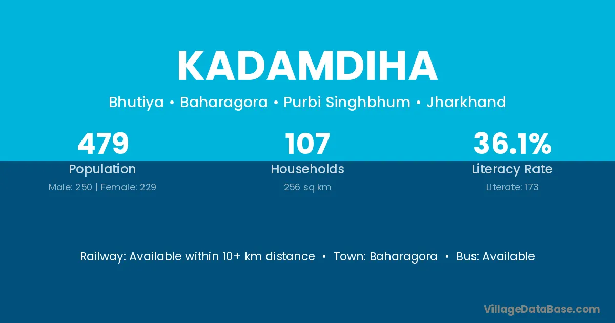 Kadamdiha village has a total population of 643 people, of which 322 are males and 321 are females.