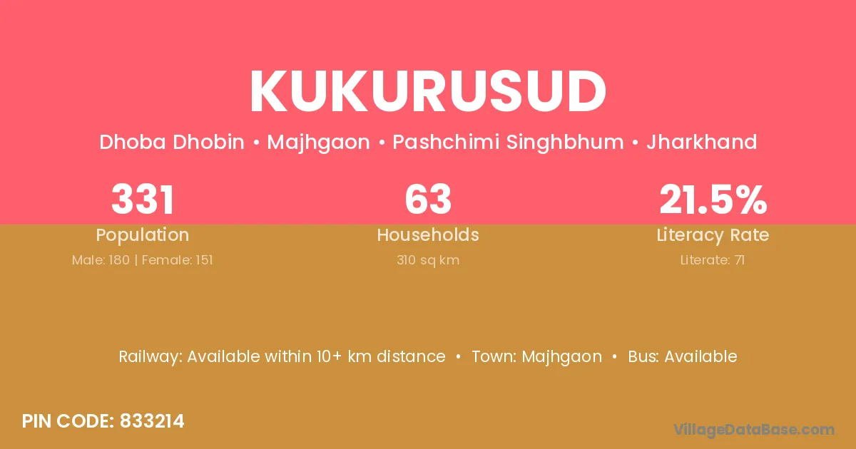 Kukurusud village is located in the Majhgaon Subdivision of the Pashchimi Singhbhum district in Jharkhand .