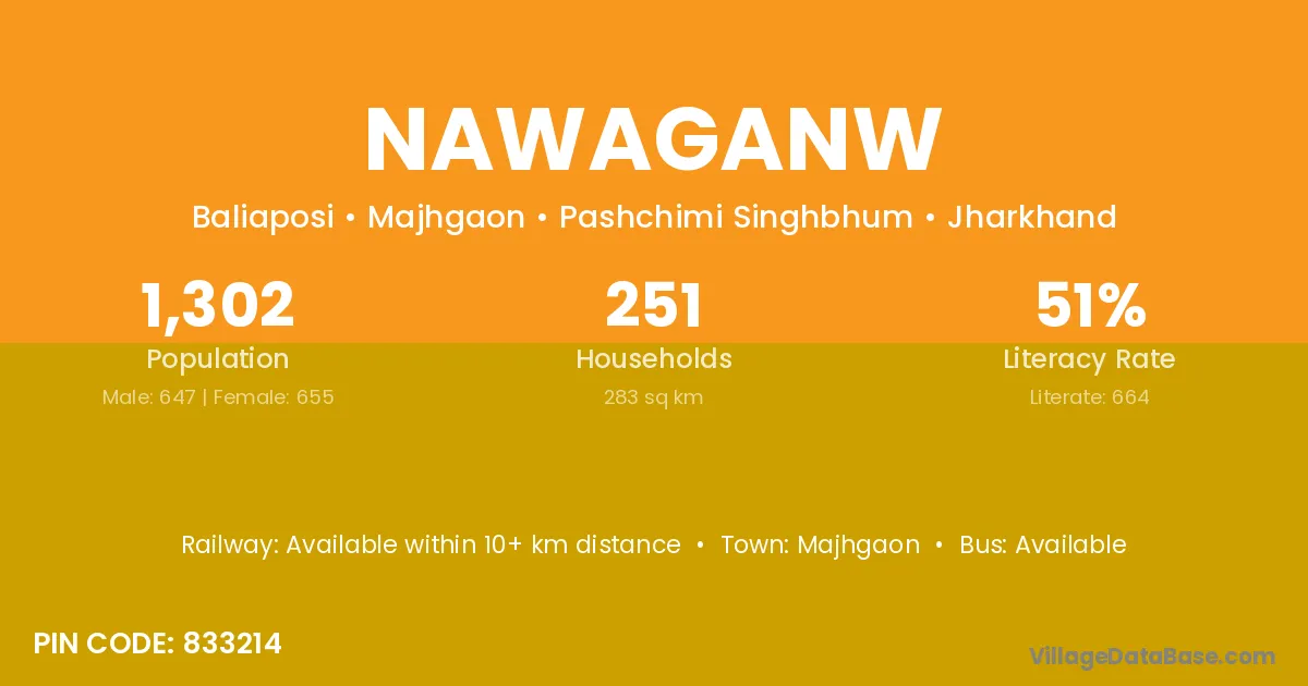 Nawaganw village has a total population of 1,302 people, of which 647 are males and 655 are females.