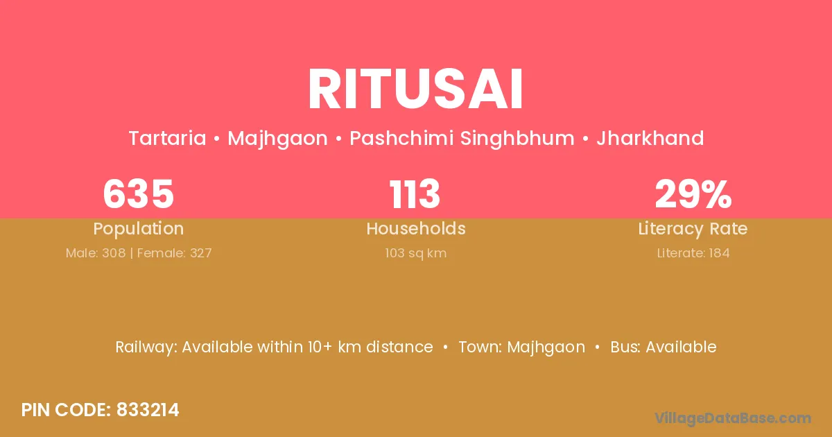 Ritusai village is located in the Majhgaon Subdivision of the Pashchimi Singhbhum district in Jharkhand .