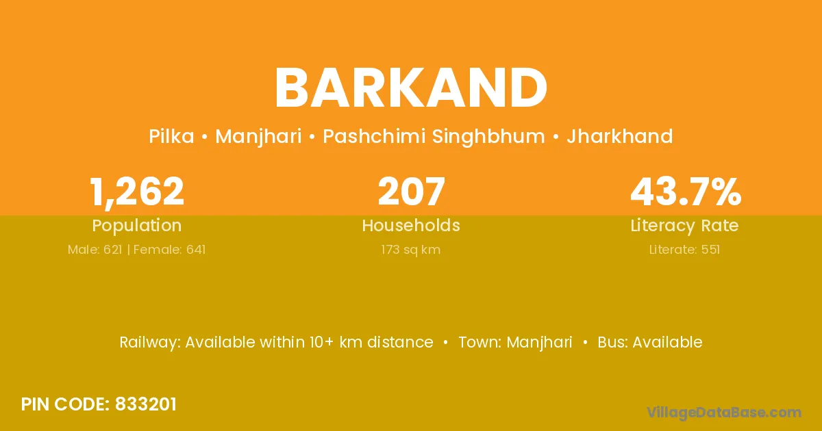 According to Census 2011 information, the village code of Barkand village is 833201.