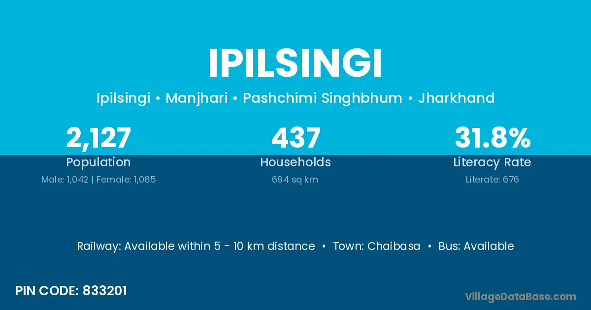 Chaibasa is the nearest town to Ipilsingi village for major economic activities